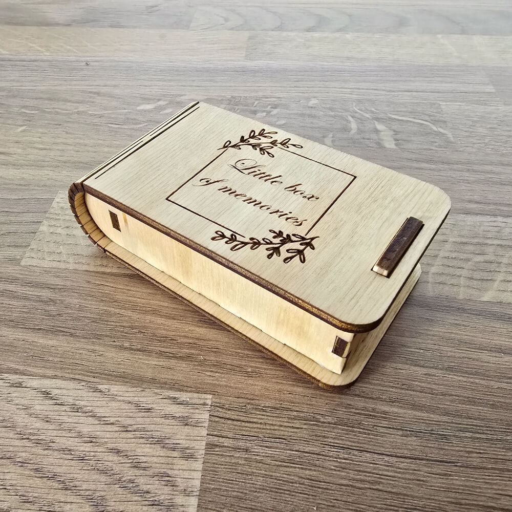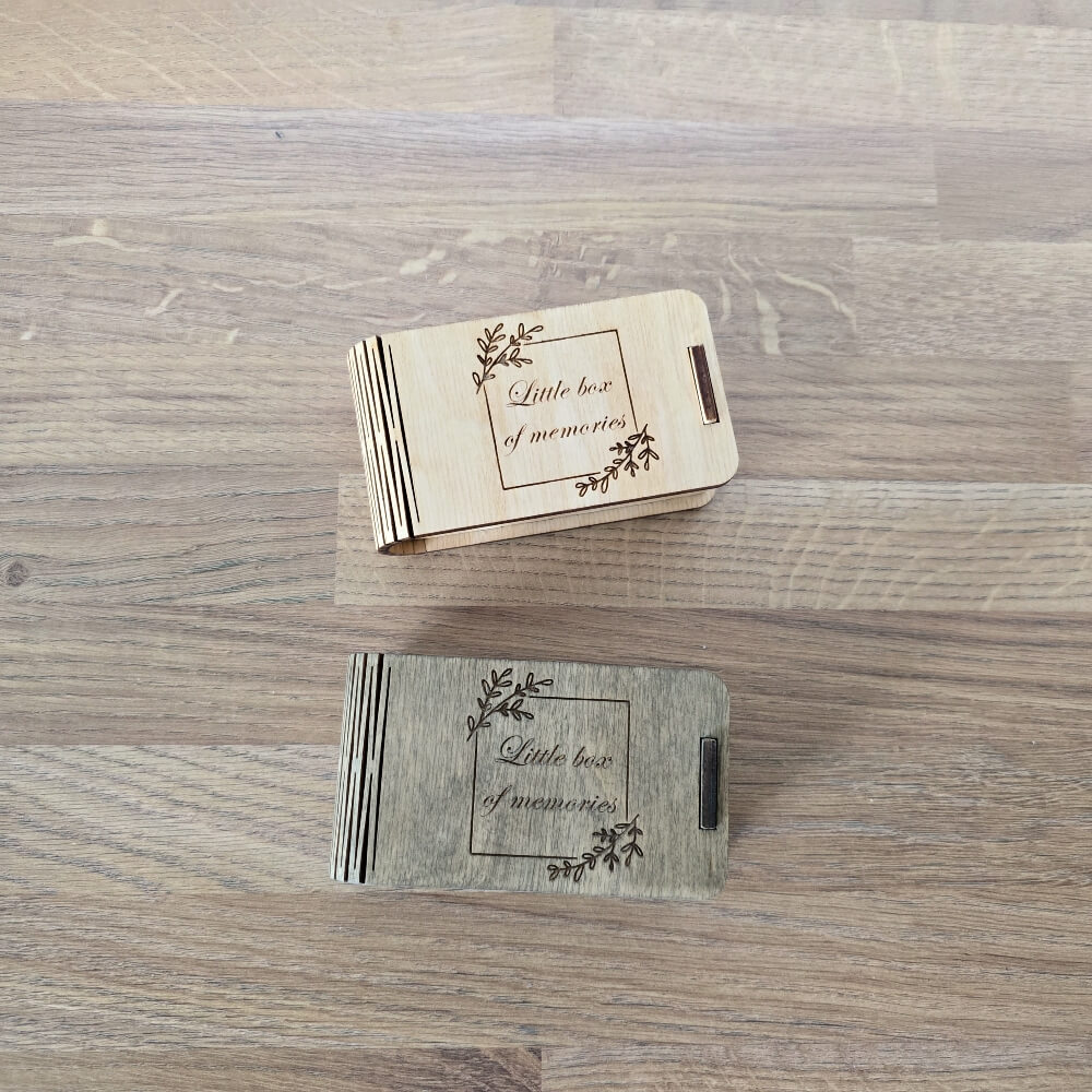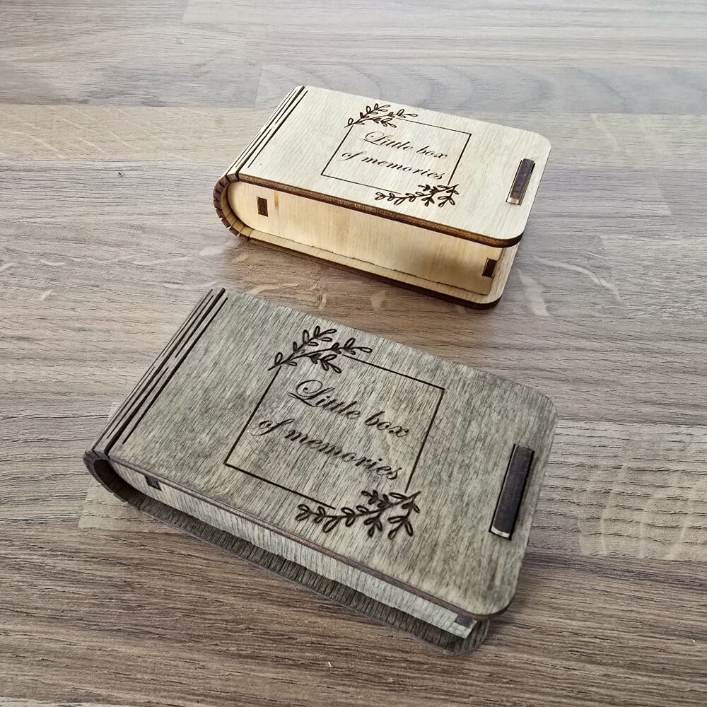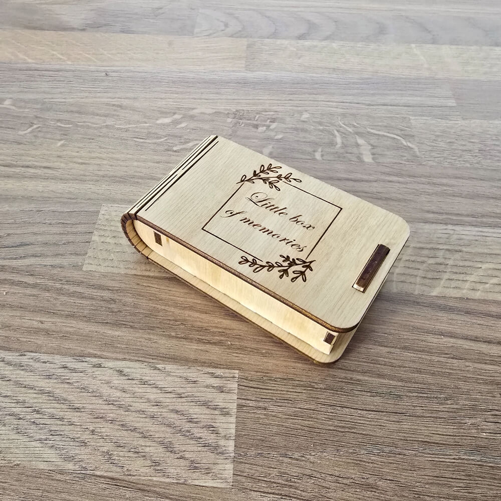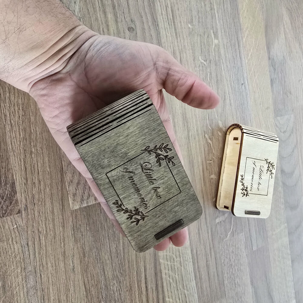 Gravură Laser de înaltă precizie: Mesajul „Little box of memories” este inscripționat folosind tehnologie laser, ceea ce garantează o finisare curată, fără margini arse sau imperfecțiuni. Gravura rămâne intactă pe viață, la fel ca amintirile stocate în interior.